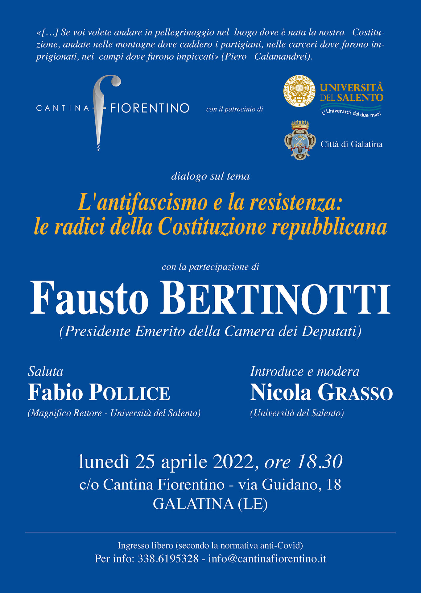 Protagonisti della tavola rotonda saranno tre ospiti d’eccezione che affronteranno il tema da angolature concettuali differenti: Fabio Pollice (Magnifico Rettore dell’Università del Salento), Fausto Bertinotti (Presidente Emerito della Camera dei Deputati) e Nicola Grasso (Professore di Diritto costituzionale dell’Università del Salento).